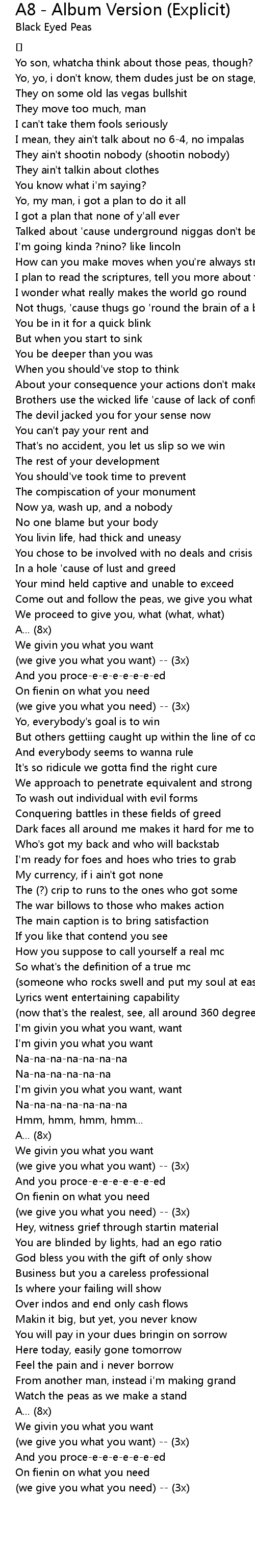 | Song | A8 - Album Version (Explicit) |