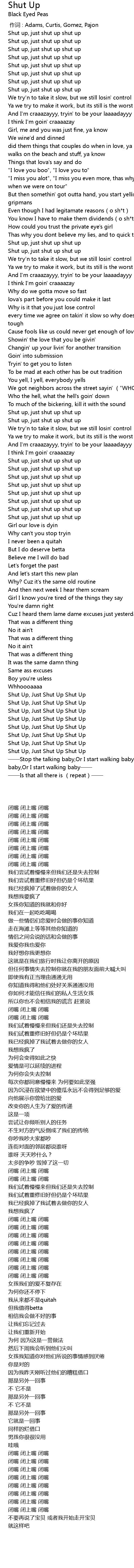 | [03:38.470] | Shut Up, Just Shut Up Shut Up |