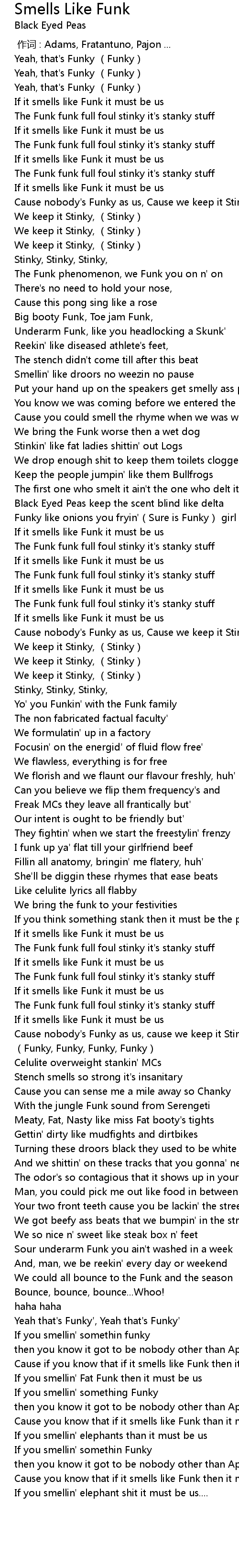 | [00:22.07] | The Funk funk full foul stinky it's stanky stuff |