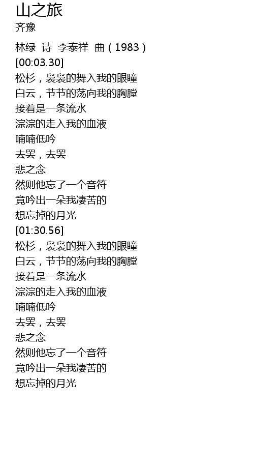 | [00:00.83] | 林绿 诗 李泰祥 曲(1983) |