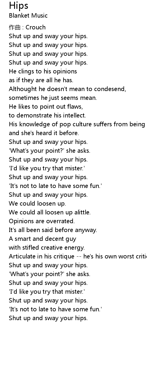 | Shut up and sway your hips. | |