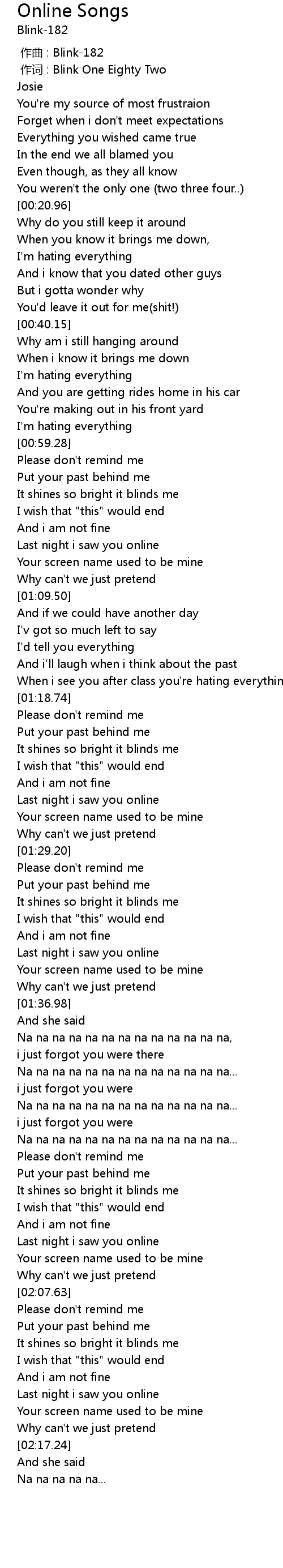 | [00:00.00] | zuo qu : Blink182 |