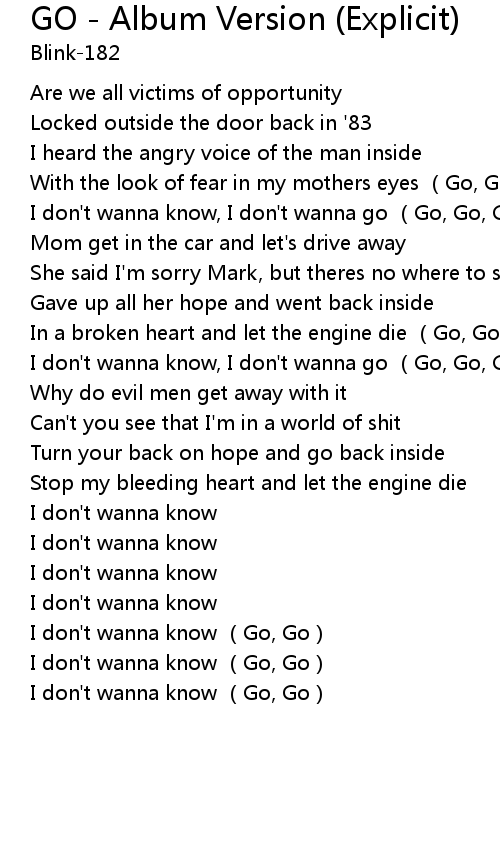 | [01:19.55] | I don' t wanna know Go, Go |