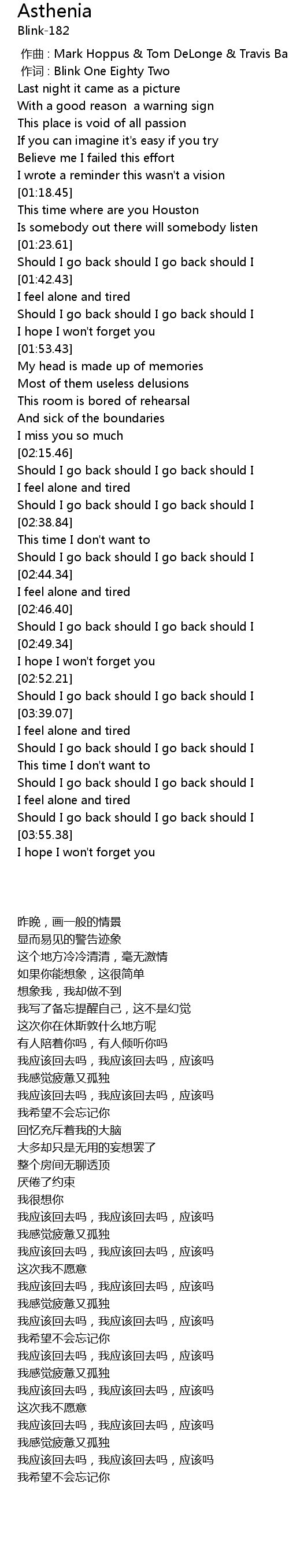 | [00:01.00] | 作词 : Blink One Eighty Two |