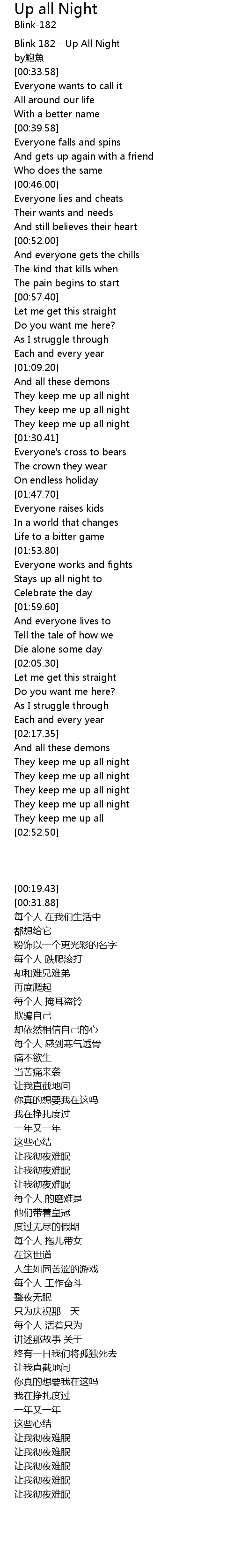 | [00:19.43] | Blink 182 - Up All Night |