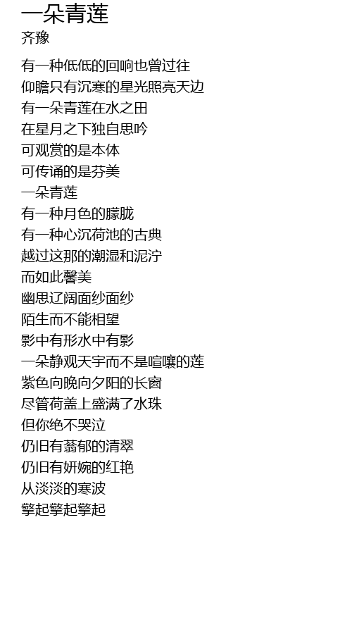 | [00:57.940] | you yi duo qing lian zai shui zhi tian |