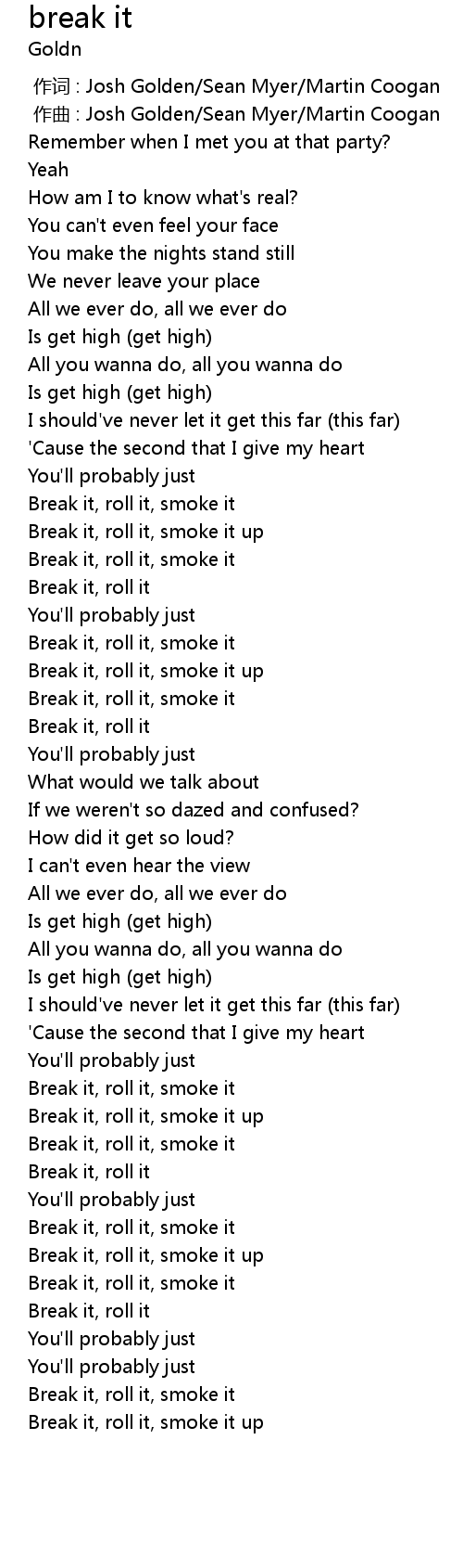 | [01:39.40] | Break it, roll it, smoke it up |
