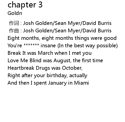 | [00:00.000] | 作词 : Josh Golden/Sean Myer/David Burris |