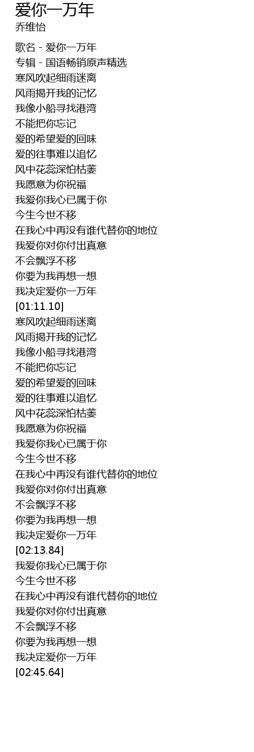 [00:04.40] 歌名-爱你一万年