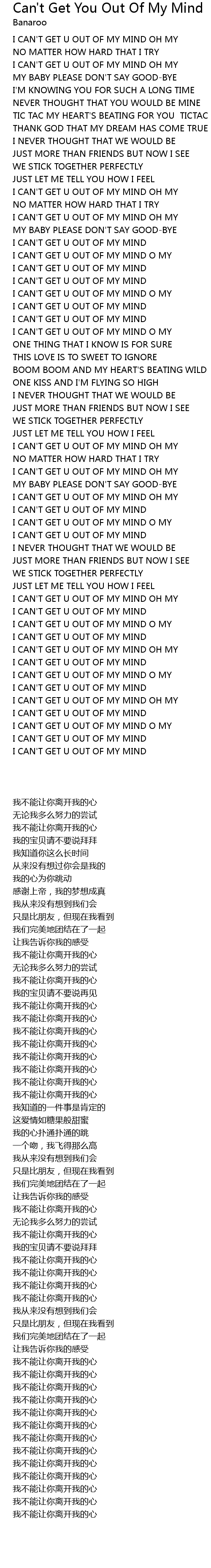 | [00:51.17] | I CAN'T GET U OUT OF MY MIND OH MY |