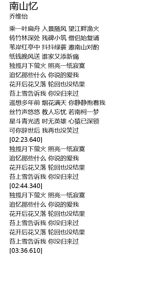 | [03:23.750] | 花开后花又落 轮回也没结果 |