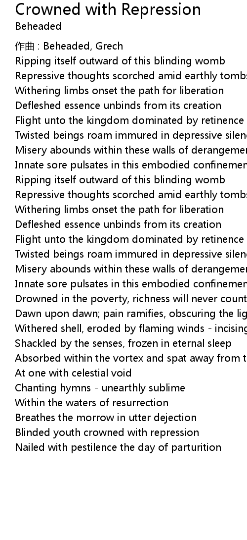 | Song | Crowned with Repression |