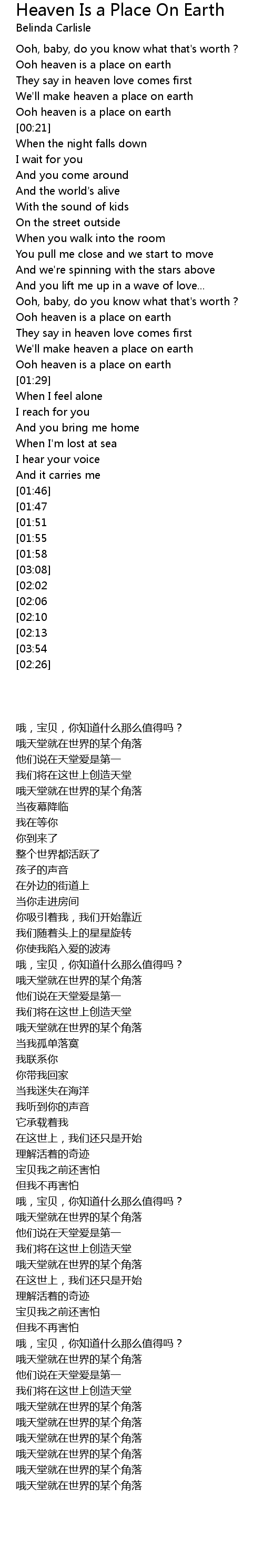 [03:57][03:54][03:49][03:45][03:42][03:38][02:17] Ooh heaven is a place on earth