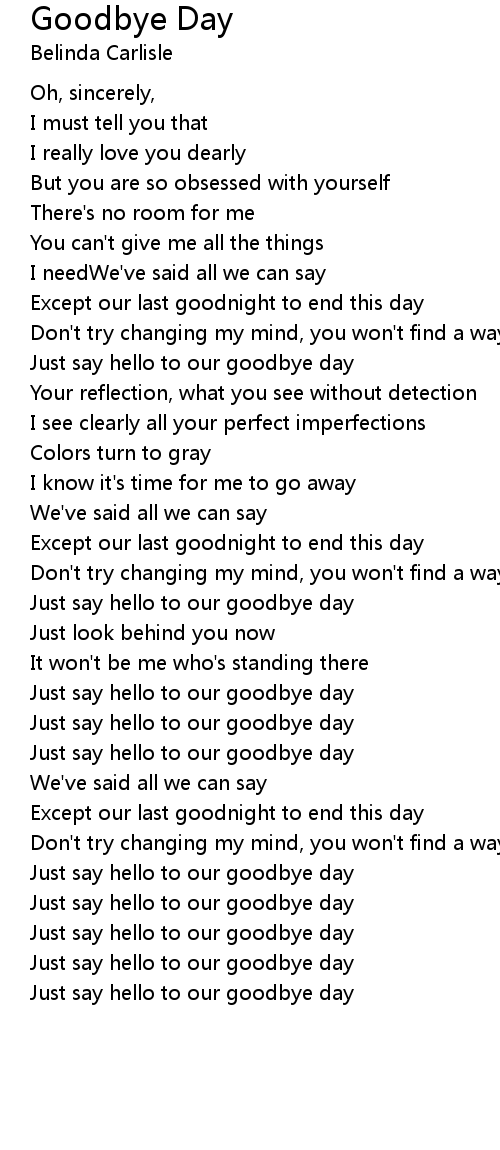 Just say hello to our goodbye day |