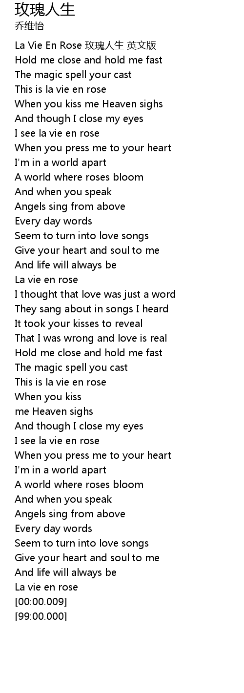 | [00:19.63] | La Vie En Rose mei gui ren sheng ying wen ban |