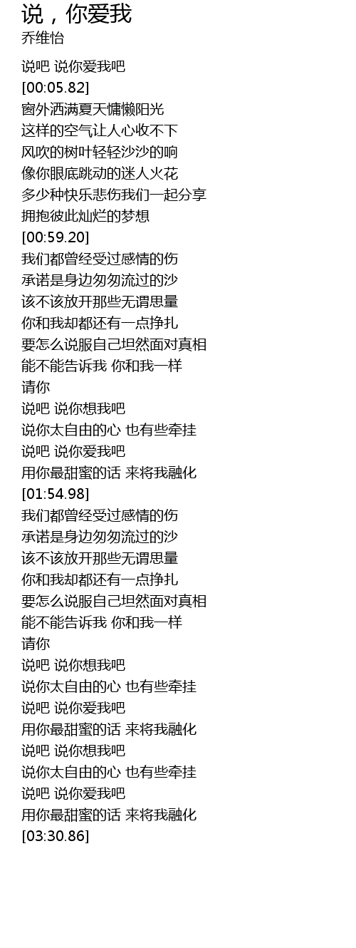 | [01:42.32] | shuō ba shuō nǐ ài wǒ ba |