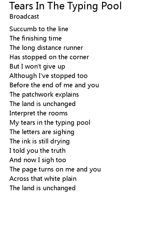| Song | Tears In The Typing Pool |