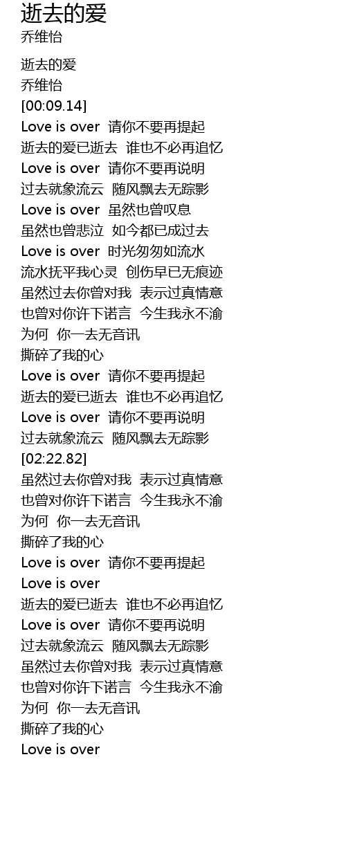 | [00:45.63] | Love is over 虽然也曾叹息 |
