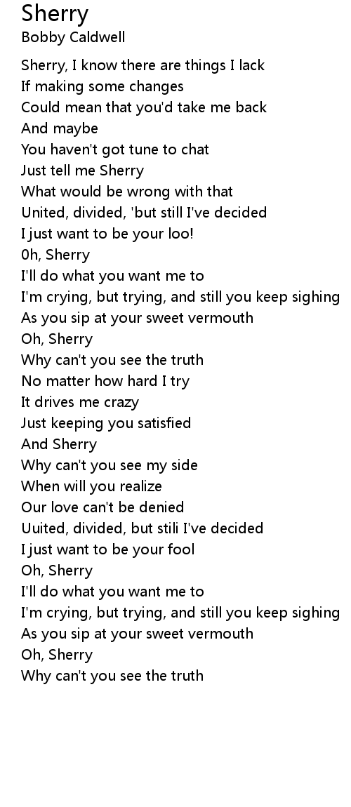 Sherry, I know there are things I lack |