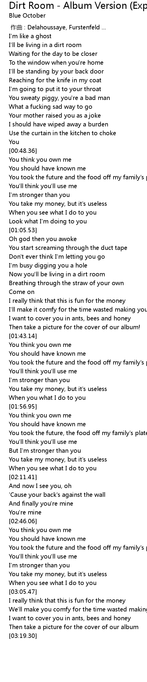 | [01:23.42] | Now you' ll be living in a dirt room |