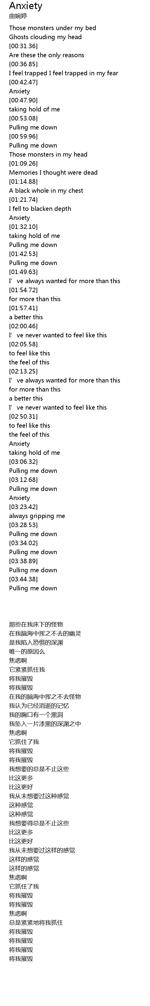 | [02:56.61] | Anxiety |