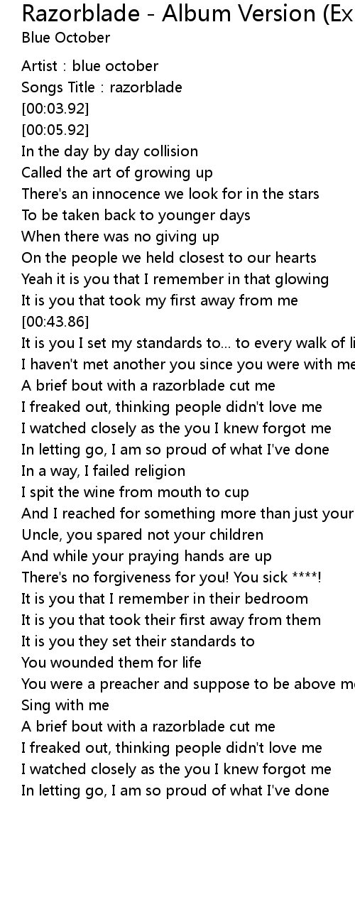 | [00:54.52] | A brief bout with a razorblade cut me |