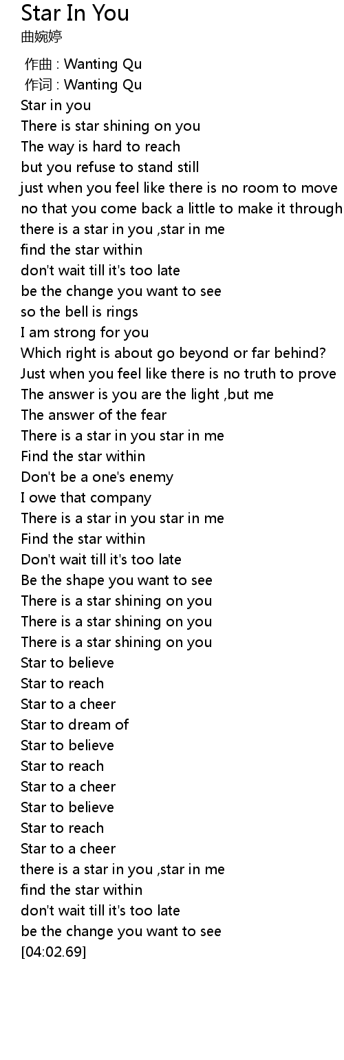 | [01:40.34] | Find the star within |