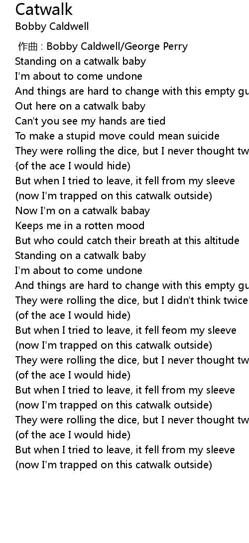 | [00:53] | Out here on a catwalk baby |