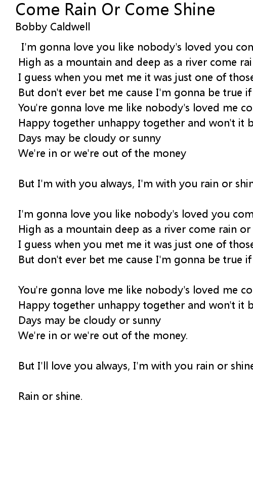 I'm gonna love you like nobody's loved you come rain or come shine |