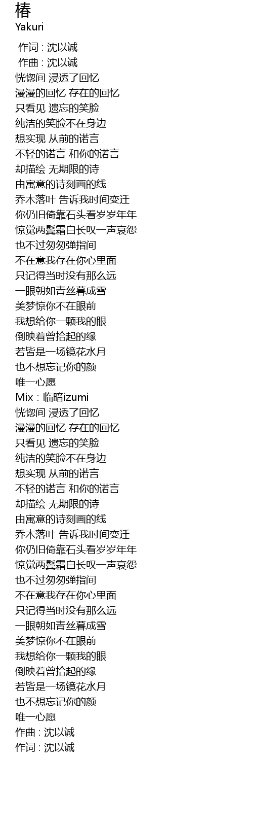 | [00:00.000] | 作词 : 沈以诚 |