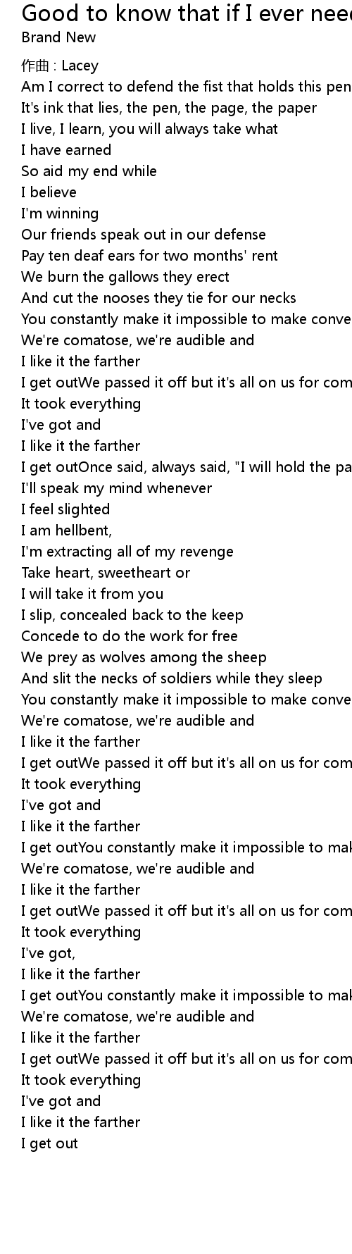 | Song | Good to know that if I ever need attention all I have to do is die |