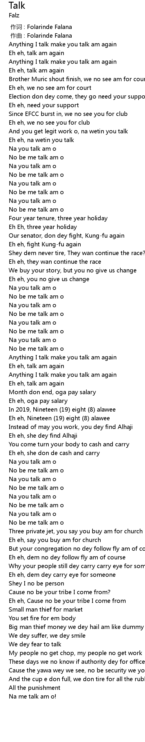 | [00:00.000] | 作词 : Folarinde Falana |