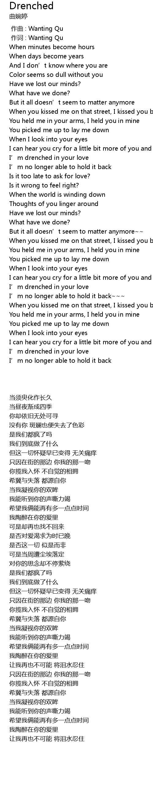 | [00:01.00] | 作词 : Wanting Qu |