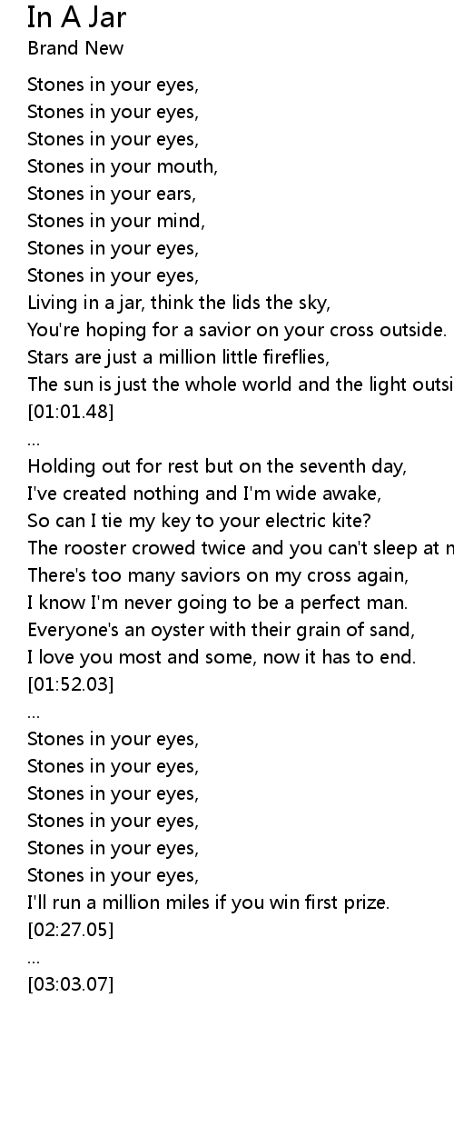| [00:31.43] | Stones in your eyes, |