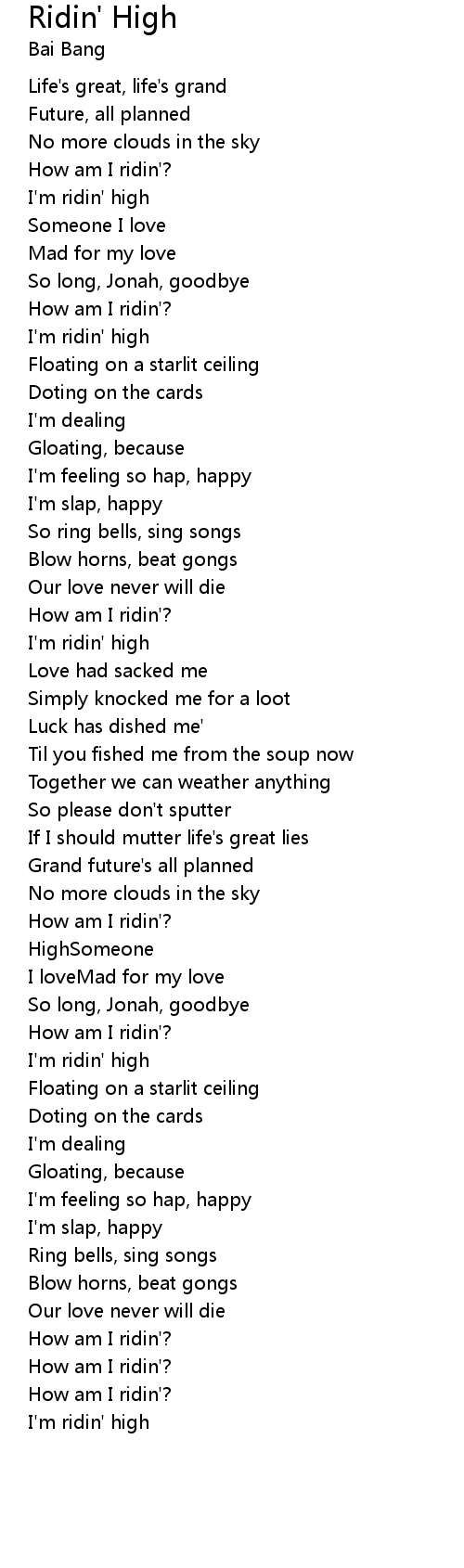 I'm ridin' high |