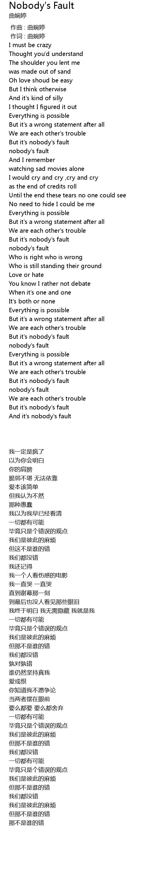 | [02:38.259] | But it' s nobody' s fault |