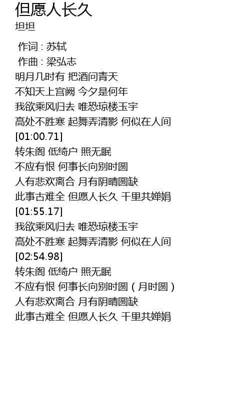 | [03:41.31] | 此事古难全 但愿人长久 千里共婵娟 |