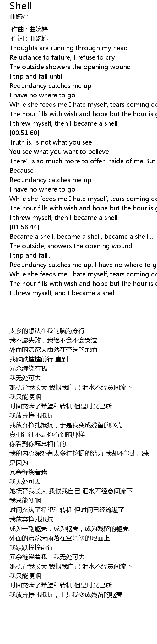 | [02:03.90] | Became a shell, became a shell, became a shell |