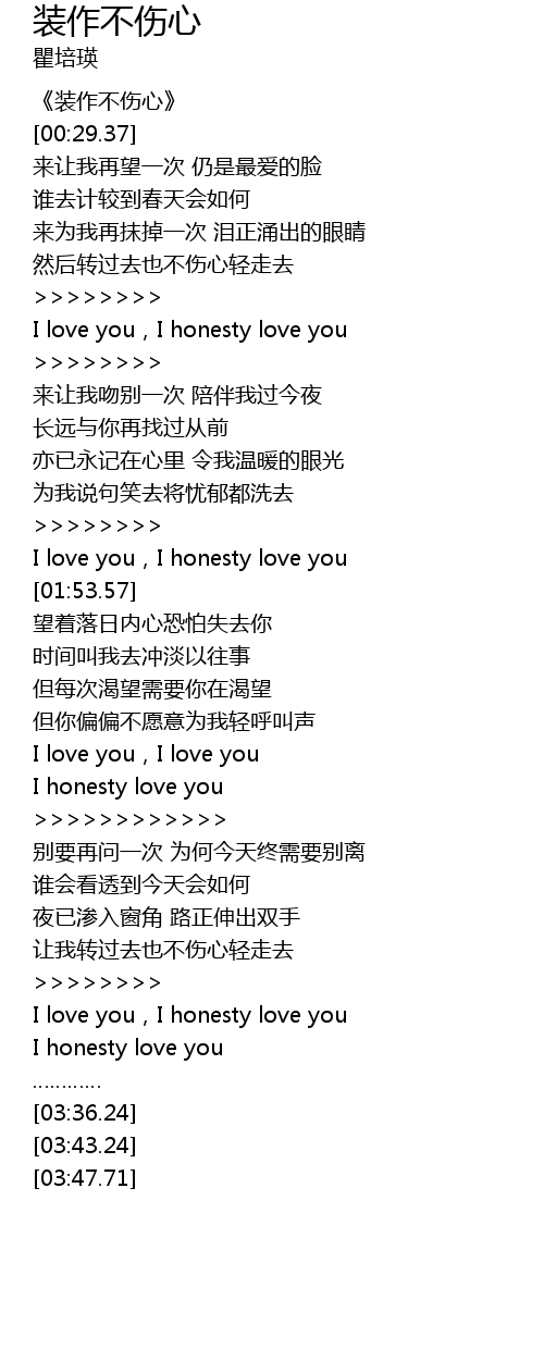 | [00:53.71] | rán hòu zhuǎn guò qù yě bù shāng xīn qīng zǒu qù |