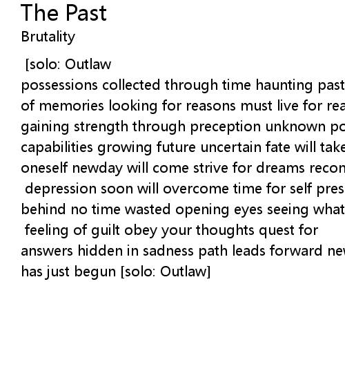 [music by Walsh/Acres, lyrics by Reigel] [solo: Outlaw] stripped of all possessions collected through time haunting past constant thinking reflections of memories looking for reasons must live for reality absorb the knowledge gaining strength through preception unknown powers now revealed mind capabilities growing future uncertain fate will take you there transformation to oneself newday will come strive for dreams reconstruction through time [solo: Outlaw] depression soon will overcome time for self presorvation others left behind no time wasted opening eyes seeing what must be done destiny unfolds travels abroad [solo: Outlaw] feeling of guilt obey your thoughts quest for answers hidden in sadness path leads forward new millenium show the truth life has just begun [solo: Outlaw] |