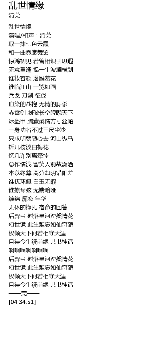 | [04:15.46] | 且待今生续前缘 共书神话 |