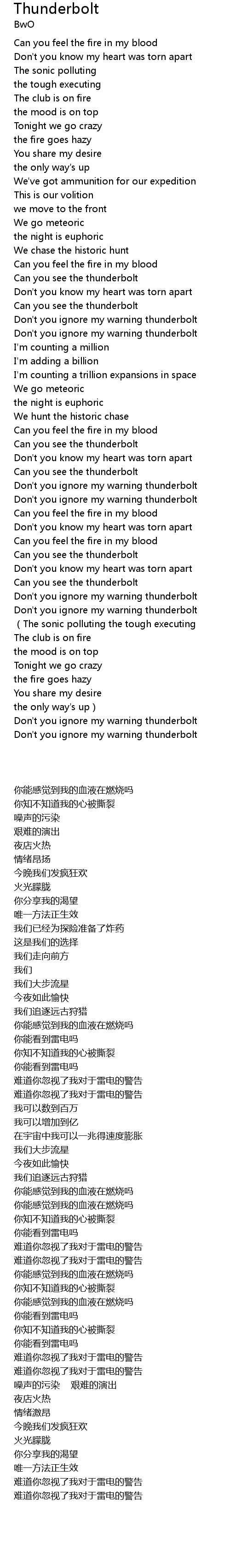 | [03:02.35] | Don' t you ignore my warning thunderbolt |