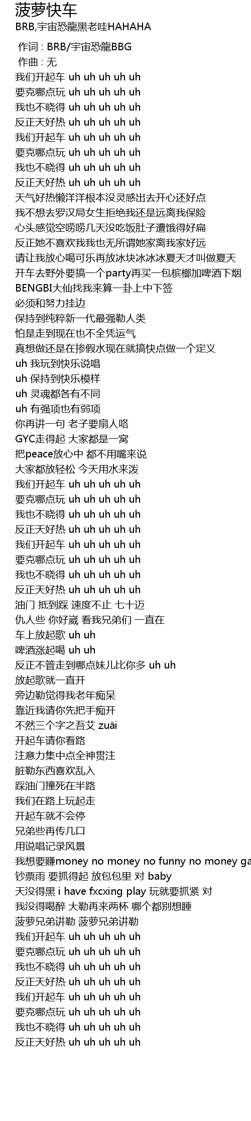 | [01:53.200] | 我们开起车 uh uh uh uh uh |