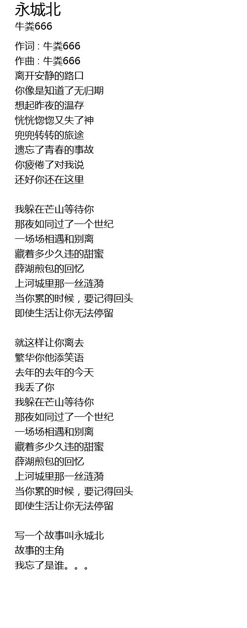 | xiě yí gè gù shì jiào yǒng chéng běi | |
