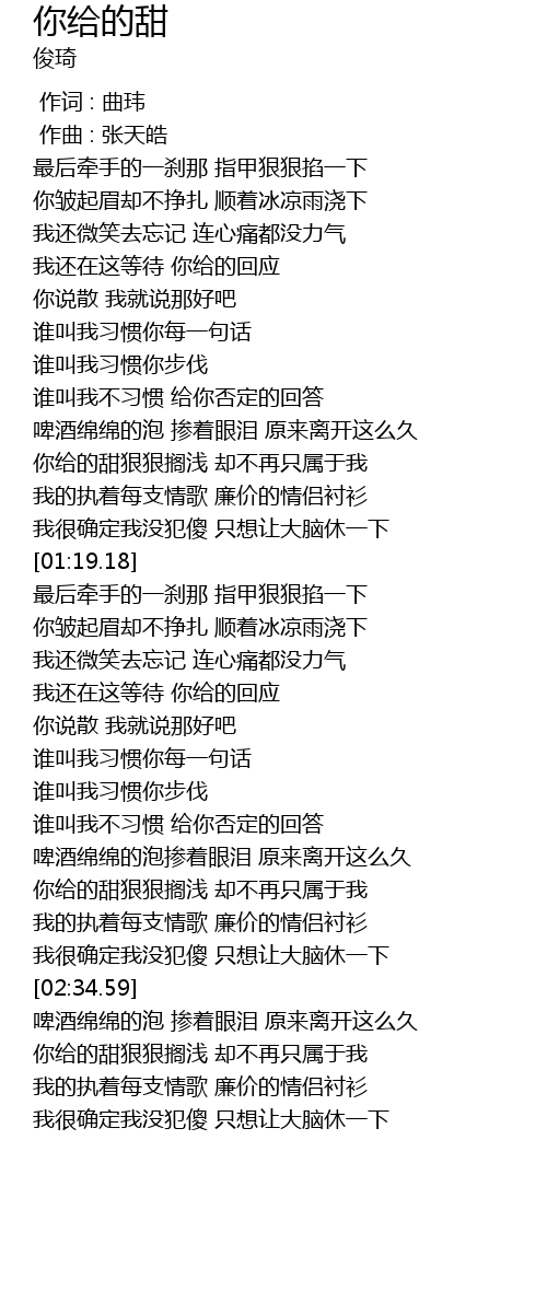 | [02:43.40] | 你给的甜狠狠搁浅 却不再只属于我 |
