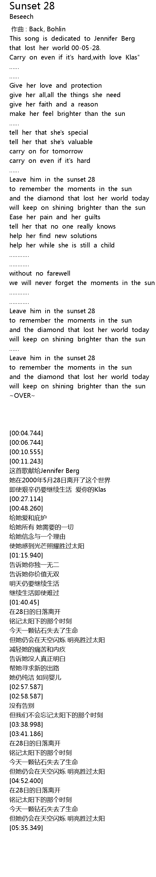 | [00:12.802] | This song is dedicated to Jennifer Berg |