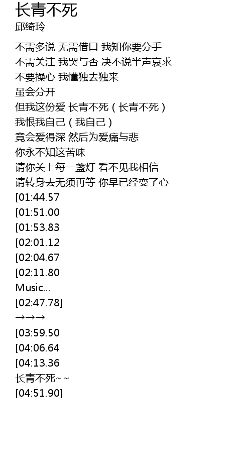 | [03:36.12][01:53.83] | 但我这份爱 长青不死(长青不死) |