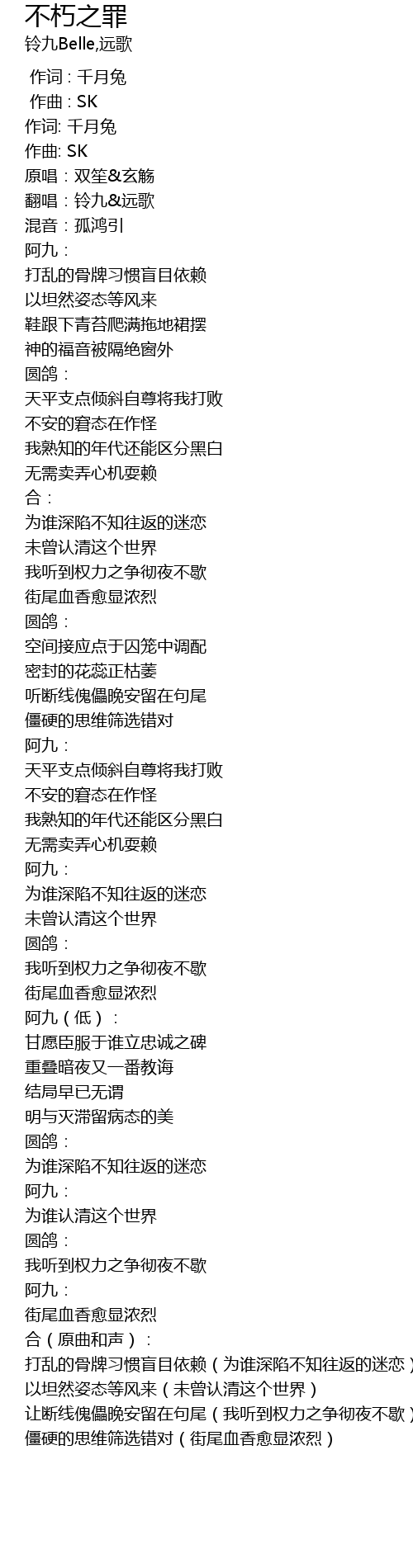 | [00:06.175] | 翻唱:铃九&远歌 |
