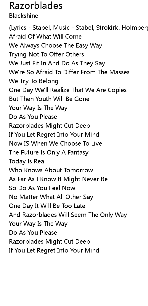 (Lyrics - Stabel, Music - Stabel, Strokirk, Holmberg)