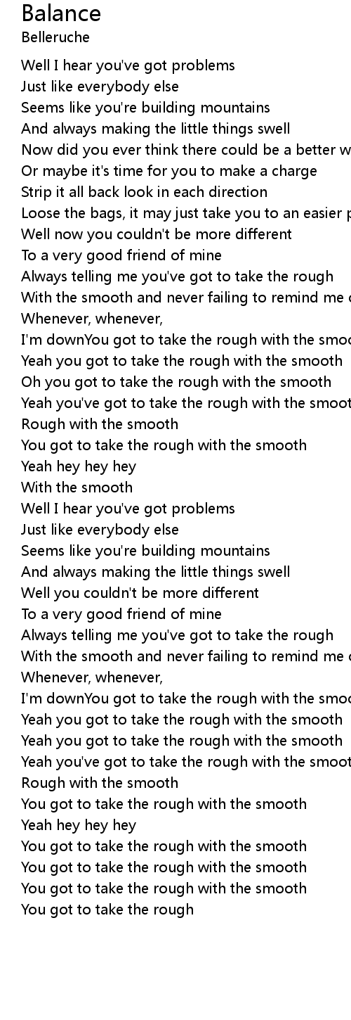 Oh you got to take the rough with the smooth |